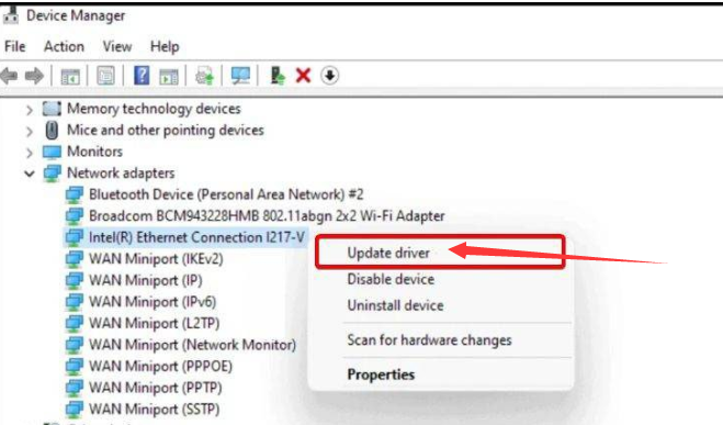2、选择更新驱动程序。