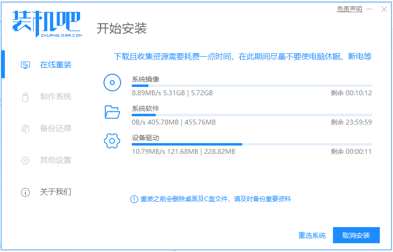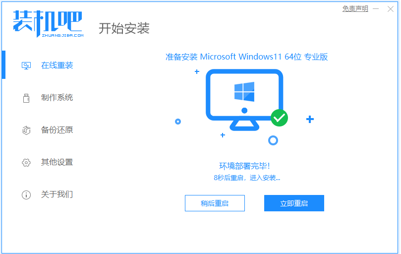 5、装机吧装机工具自动安装win11系统,完成后自动重启。